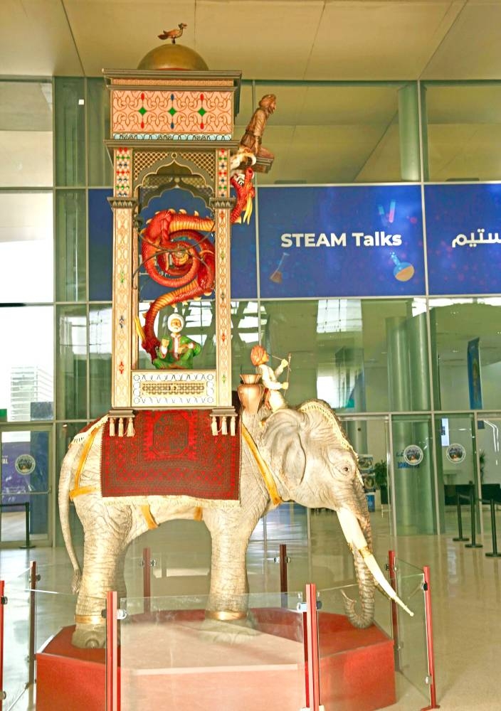 تتواجد نسخة طبق الأصل من الساعة العربية التي اخترعها العالم العربي المسلم بَدِيعُ الزَمان أَبُو اَلْعِزِ إسْماعِيل الرِّزاز الجَزرِي، قبل أكثر من 800 عام، في مهرجان العلوم والتقنية «ستيم 2024»، الذي تنظمه واحة الملك سلمان للعلوم حتى نهاية سبتمبر الحالي. وتعد ساعة الفيل التي اخترعها العالم العربي الجَزرِي، الذي عاش خلال الفترة (1136– 1206م)، وهي تحفة بديعة تجمع مجالات العلوم والتقنية والهندسة والفنون والرياضيات (STEAM) من العصر الذهبي للحضارة الإسلامية، وفيها تجلت المبادئ العلمية الدقيقة، والتقنيات المائية الذكية، والهندسة المتقنة، والفنون التي تدمج بين ثقافات متنوعة، والرياضيات التي تضمن دقة الأداء. وتشكل مثالًا حيًا على أن جذور الثورات العلمية والتقنية المعاصرة متجذرة بعمق في التراث العربي الإسلامي الأصيل، وهي رمز الابتكار الدائم الذي يتجاوز حدود الزمان والمكان، ويشكل جزءًا من الحضارة الإسلامية التي مهدت الطريق للثورات الصناعية الكبرى، ويستمر في إلهامنا نحو المستقبل.