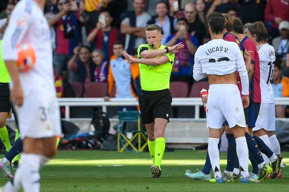 أثار مقطع صوتي بين حكم الساحة وغرفة تقنية الفيديو جدلاً واسعاً خلال مباراة «الكلاسيكو المجنون» بين برشلونة وريال مدريد، التي انتهت بفوز الفريق الكاتالوني صاحب الأرض 4-3، الأحد، واقترابه من حسم لقب الدوري الإسباني بعدما وسع الفارق إلى 7 نقاط قبل 3 جولات على ختام البطولة.