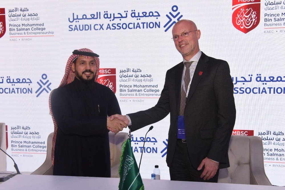 ووقع الاتفاقية كل من الدكتور زيغر ديجريف، بصفته عميد كلية الأمير محمد بن سلمان للإدارة وريادة الأعمال، والمهندس عبدالله الغامدي، مؤسس ورئيس مجلس إدارة جمعية تجربة العميل. وستسهم هذه الشراكة في تمكين رأس المال البشري لدى الجمعية، وحفز تفكيرهم الإبداعي وقدراتهم على التصرف واتخاذ القرارات، وذلك في الإطار الأشمل لمهمة الجمعية الهادفة إلى إطلاق الإمكانات الكاملة لتجربة العميل في المملكة. وفي تعليقه على اتفاقية التعاون الجديدة، قال الدكتور زيغر ديجريف: «نعرب عن سعادتنا للتعاون مع جمعية تجربة العميل التي تنطلق من نهج فكري متقدم، إلى جانب التزامها برسم معالم مستقبل مشرق في مجال تجربة العميل للمملكة. ومن المؤكد أن البرامج التعليمية التي صممناها في الكلية ستزوّد موظفيها وأعضائها بالمعرفة والمهارات المتطورة اللازمة، لمساعدتهم على مواجهة التحديات الحقيقية في القرن الحادي والعشرين، كما ستعمل على ترسيخ ثقافة تجربة العميل في جميع أنحاء المملكة.» من جهته قال المهندس عبدالله الغامدي: «يسعدنا التوصل إلى علاقة تعاون مع كلية الأمير محمد بن سلمان للإدارة وريادة الأعمال في إطار تحالف استراتيجي مشترك للتأكيد على التزامنا الراسخ وحرصنا على رعاية المواهب وتعزيز مشهد تجربة العميل في جميع أنحاء المملكة. ومن خلال اعتمادنا على الأطر التعليمية العالمية التي توفرها الكلية، سنتمكن من تحفيز الابتكار والارتقاء بالتميز في تجربة العميل، وإطلاق حقبة جديدة من النمو ورضا العملاء، تماشياً مع مستهدفات»رؤية المملكة 2030″. وتجسّد هذه الخطوة مساعينا الرامية لرفع معايير تجربة العميل، والإسهام في جعل المملكة منارة عالمية للتميز في هذا المجال.