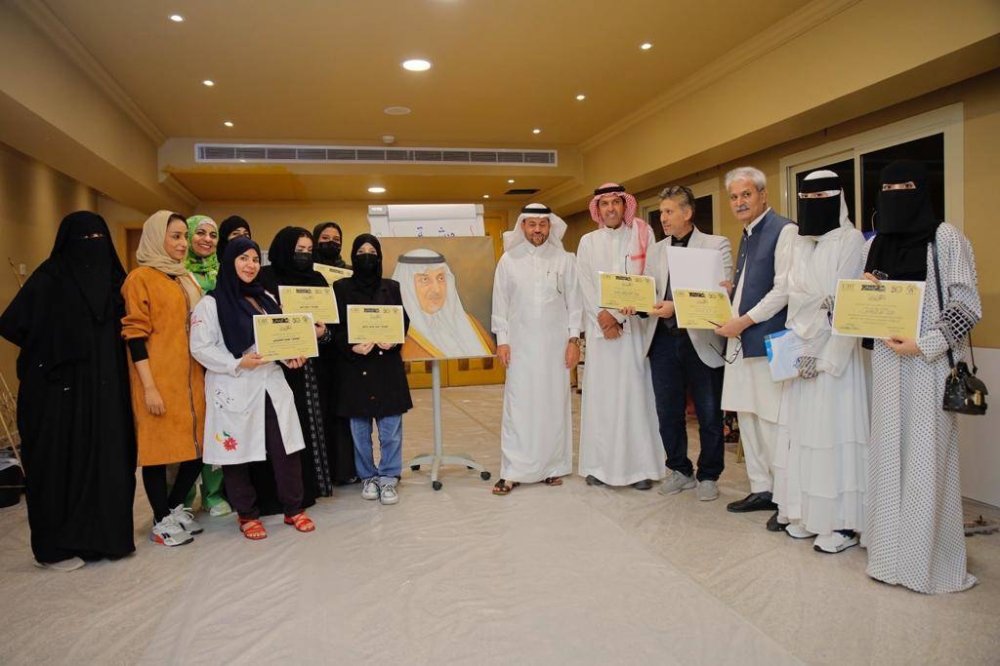 أقام النادي الأدبي الثقافي بجدة ممثلاً في منتدى الفنون البصرية ورشة تشكيلية في رسم «البورتريه» بعنوان «وفاء»، قدمتها الفنانة التشكيلية نوال العمري، شارك فيها عدد من الفنانين والفنانات المتميزين في «البورتريه»، تناولوا من خلالها رسم العديد من الشخصيات التي ساهمت في مسيرة نادي جدة الأدبي من خلال رئاسة النادي أو دعمه. وأبدت الفنانة نوال العمري سعادتها بالنتائج التي أفرزتها الورشة وقالت: أشعر بسعادة كبيرة وأنا أشاهد هذا الكم من المبدعين والمبدعات يشاركون في ورشة لـ«البورتريه»، وسعادتي الكبرى بالنتائج المذهلة والتعاون بين الحضور لإنتاج أعمال مميزة لشخصيات كان لها دور كبير في مسيرة النادي، وقدمت شكرها لرئيس النادي الأدبي الدكتور عبدالله عويقل السلمي على دعمه وتشجيعه وإتاحة الفرصة للفنون البصرية لتكون جزءاً مهماً في نشاطات النادي.