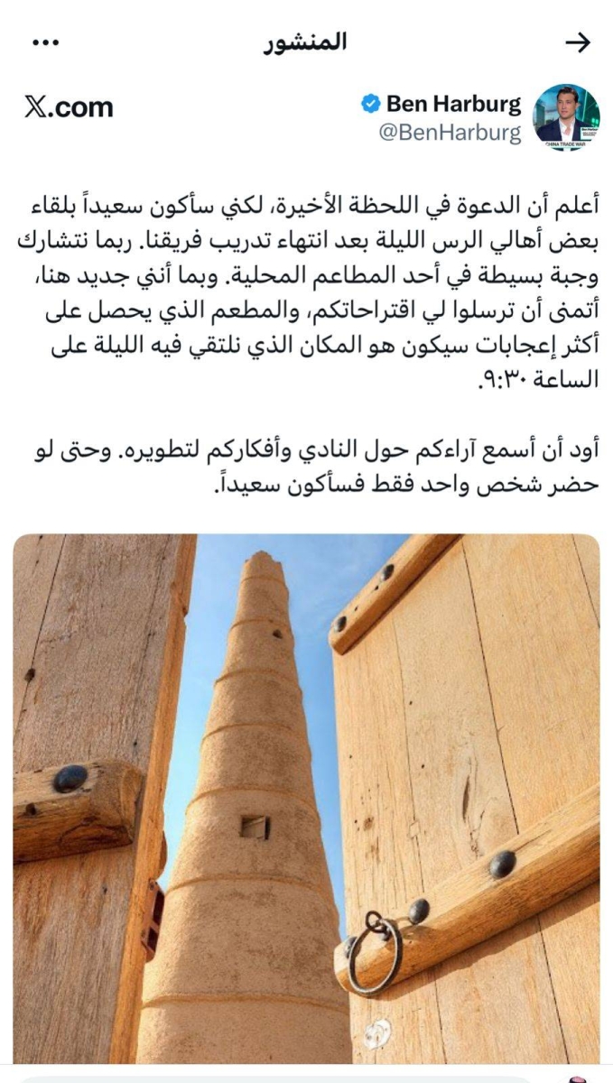 في خطوة لافتة تعكس أسلوبا إداريا مختلفا في ملاك الأندية السعودية، وجّه رجل الأعمال الأمريكي بن هاربورغ، مالك نادي الخلود من مدينة الرس، دعوة عبر حسابه في منصة «X» لأهالي المحافظة من أجل مشاركته لقاء وديا في أحد المطاعم المحلية مساء اليوم. الدعوة التي جاءت في اللحظة الأخيرة، كما وصفها هاربورغ، تضمنت رغبته في التعرّف أكثر على المجتمع المحلي والاستماع لآرائهم وأفكارهم بشأن النادي، وكتب قائلا إنه سيكون سعيدا حتى لو حضر شخص واحد فقط إلى هذا اللقاء، مشيرا إلى أن المطعم الذي سيحصل على أكثر تفاعل من الجمهور سيكون هو المكان المعتمد للقاء.