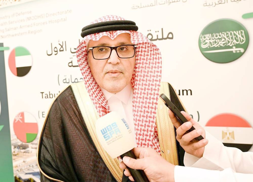 وقال، خلال ملتقى تبوك الدولي الأول لتعزيز الصحة، المقامة فعالياته حالياً بمستشفى الملك سلمان للقوات المسلحة بالشمالية الغربية: إن القطاع الصحي في المملكة يواصل تحوله الكبير، لنقله من مفهوم علاج المرض لتعزيز الصحة، ومن الوقاية وتعزيزها وصولاً إلى تقليل الأمراض، والمؤتمر يقوم في صميم إستراتيجيتنا لإيجاد مجتمع صحي مستدام لمنسوبي وزارة الدفاع وذويهم.