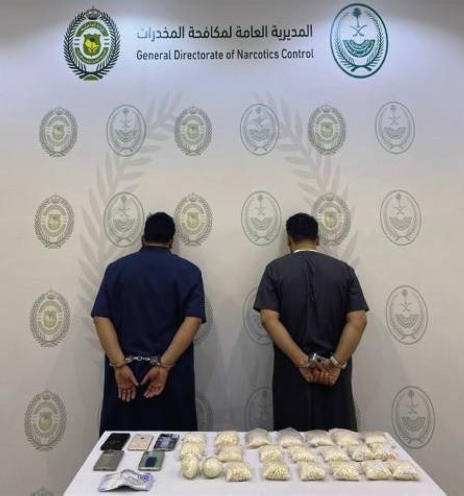 قبضت المديرية العامة لمكافحة المخدرات على مواطنين بمنطقة الجوف لترويجهما (21,974) قرصًا من مادة الإمفيتامين المخدر، وجرى إيقافهما واتخاذ الإجراءات النظامية بحقهما، وإحالتهما إلى النيابة العامة.