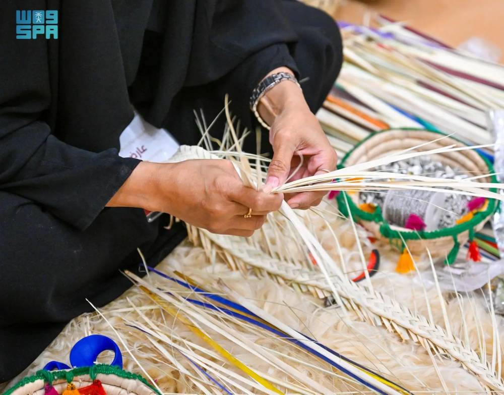 وشهد ركن الحرف اليدوية في «الكرنفال» إقبالاً لافتاً من المهتمين بالتراث، واستعرضت إحدى الحرفيات (أم عبدالله) مراحل صناعة الخوص من سعف النخيل بعد تنقيعه وتجفيفه؛ ليُشكّل في صورة جدائل متشابكة تتحول إلى منتجات متنوعة مثل: الزنابيل، والمخارف، والحصر، وسُفر الطعام.