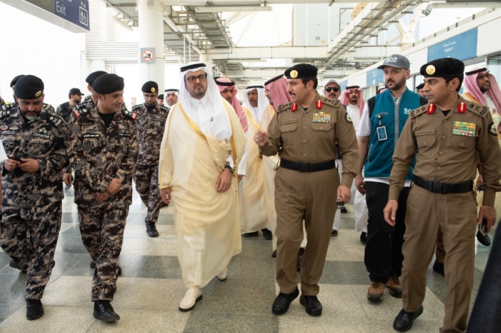 واستمع لشرح عن دور قوات أمن المنشآت في محطات قطار المشاعر وجهودها في تنظيم حركة المشاة وإدارة الحشود في المحطات، وذلك لمنع الازدحام وتنظيم الكثافة البشرية، كما تتم متابعة حركة المشاة من خلال غرفة التحكم لضمان سلامة الحجاج الداخلين لمحطات قطار المشاعر.