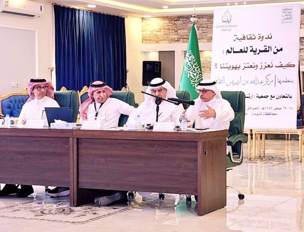 اختتمت في محافظة تنومة، أمس الأول، ندوة «تعزيز الهوية من القرية للعالم»؛ التي نظّمها مركز عبدالله بن إدريس الثقافي، بالتعاون مع جمعية إرثنا في تنومة، واستمرت فعالياتها على مدى يومي الثلاثاء والأربعاء الماضيين، وشارك فيها نخبة من الأكاديميين والكُتّاب، ركزوا في أربع جلسات عمل، بواقع 12 ورقة عمل، تناولت مستجدات وتحديات تتجاذب الهويّات، في ظلّ التحولات المتسارعة، وتقارب العالم، وعبّرت النخبة عن قلقها على هويّات الشباب الرقمي من التسييل والمحو والإذابة.