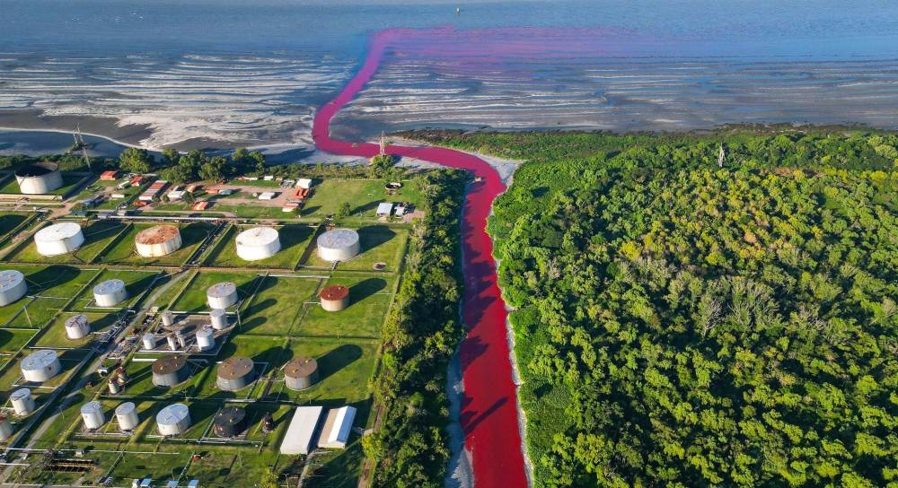 وأظهرت صور ومقاطع فيديو لمجرى سارندي، الذي يتدفق إلى مصب نهر ريو دي لا بلاتا، التغير المفاجئ في اللون.