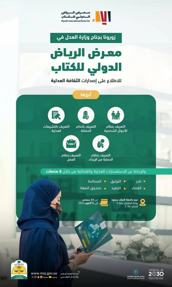 وزارة العدل تشارك بـ 6 منصات في معرض الرياض الدولي للكتاب