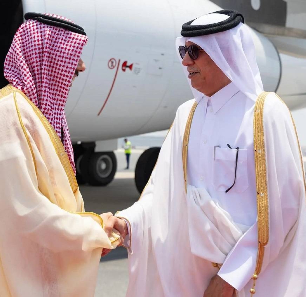 وكان في استقباله لدى وصوله مطار الدوحة الدولي، وزير الدولة للشؤون الخارجية بدولة قطر سلطان بن سعد المريخي، وسفير خادم الحرمين الشريفين لدى دولة قطر الأمير منصور بن خالد بن فرحان، والأمين العام لمجلس التعاون لدول الخليج العربية السيد جاسم محمد البديوي.