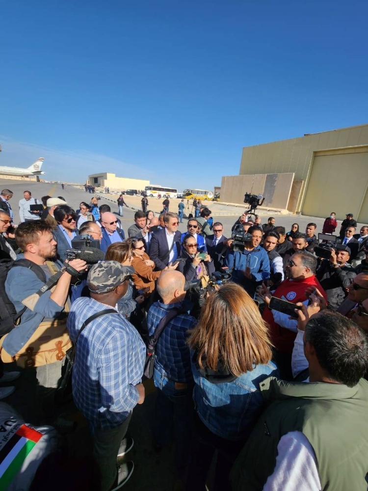 وبحسب مصادر مصرية، يزور الوفد مستشفى العريش للقاء المصابين من ضحايا الحرب الذين تم نقلهم من غزة. كما يزور منطقة تخزين المساعدات الإنسانية في العريش.
