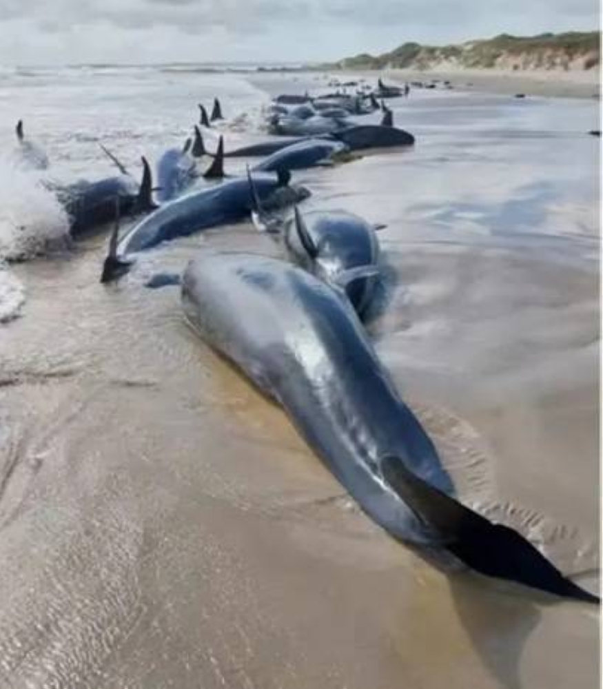 جنحت 150 من الحيتان القاتلة الكاذبة، وهي نوع من الدلافين المهددة بالانقراض، على شاطئ منعزل في ولاية تسمانيا بأستراليا، في حادثة تُعد الأولى من نوعها منذ 50 عاماً.