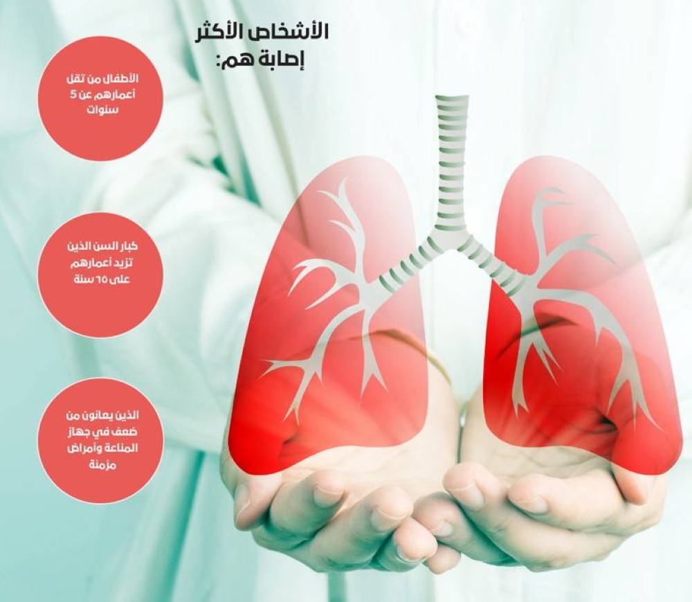 وتضيف الدكتورة همسه، أن الأطفال خصوصاً من تقل أعمارهم عن خمس سنوات، يكونون في خطر أكبر، والحال نفسه ينطبق على كبار السن الذين تزيد أعمارهم على 65 سنة، فيكونون أكثر عرضة، وكذا الأشخاص الذين يعانون من ضعف في جهاز المناعة مثل الأشخاص المصابين بأمراض مزمنة، السرطان، أو الذين خضعوا لعمليات زرع أعضاء، يكونون في خطر أكبر.