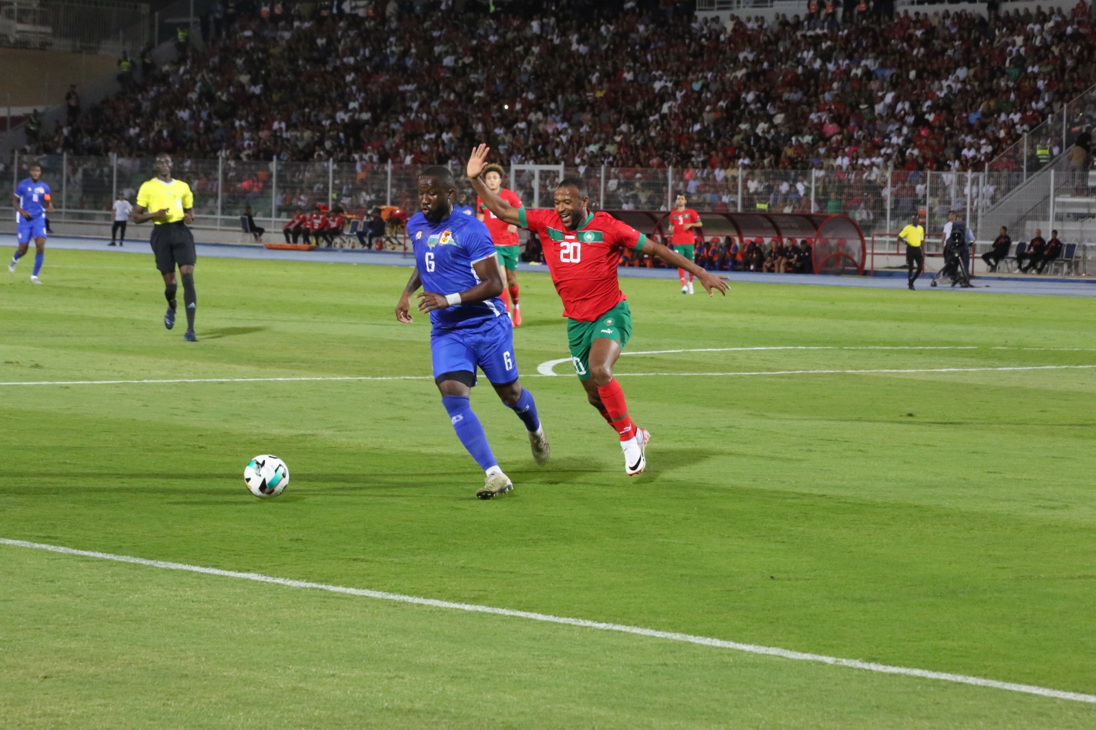 واضطر وليد الركراكي، لاستبدال ياسين بونو، جراء إصابته، وإقحام منير المحمدي، مكانه في حدود الدقيقة 32، في الوقت الذي واصل المنتخب المغربي هجماته، أملا في إضافة الهدف الثاني، للاقتراب أكثر من حسم النتيجة لصالحه، وكسب ثلاث نقاط إضافية، تجعله يواصل سلسلة نتائجه الإيجابية، بينما استمر لاعبو إفريقيا الوسطى في البحث عن التعادل، للحصول على نقطة على الأقل.
