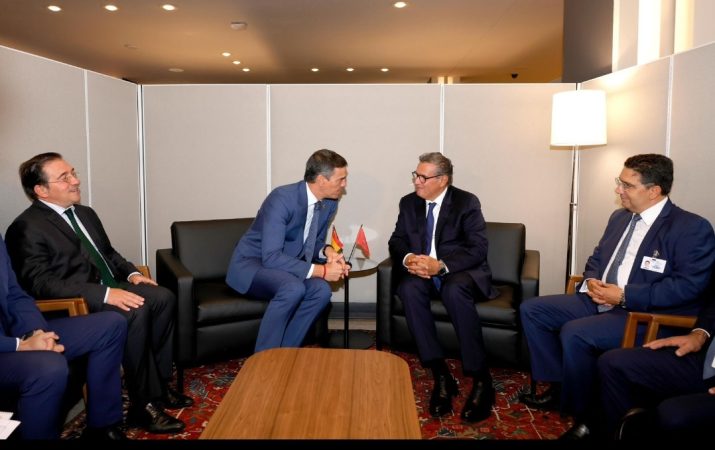 على هامش أعمال الأسبوع الرفيع المستوى للدورة الـتاسعة والسبعين للجمعية العامة للأمم المتحدة، أجرى رئيس الحكومة عزيز أخنوش، رفقة وزير الخارجية ناصر بوريطة، اليوم بنيويورك، مباحثات مع رئيس حكومة المملكة الإسبانية، بيدرو سانشيز.