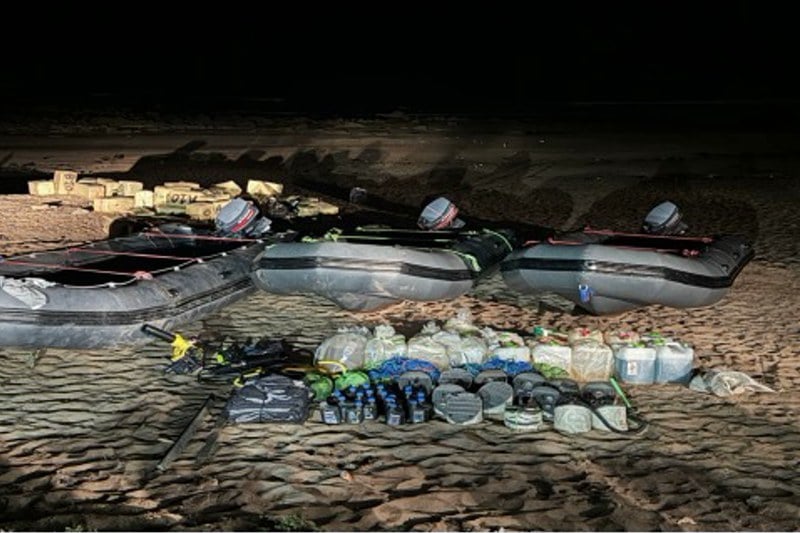وأضاف المصدر ذاته أن إجراءات التفتيش والتمشيط المكاني مكنت من ضبط مجموعة كبيرة من حاويات المحروقات، ومحركات بحرية قوية الدفع، وثلاثة زوارق مطاطية سريعة، ومضخات هوائية، وهاتف للاتصال عبر الأقمار الاصطناعية، بالإضافة إلى شاحنة كبيرة تم تسخيرها في نقل المخدرات عبر المسالك البرية.