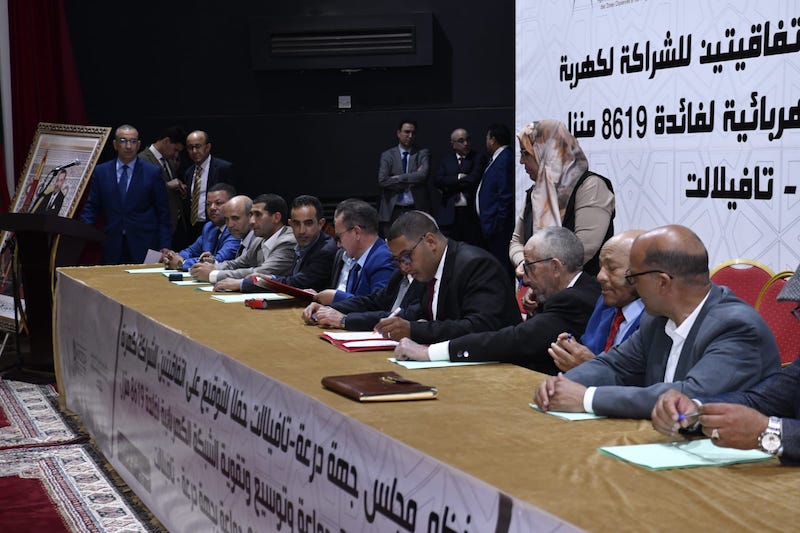 وتم توقيع الاتفاقيتين بين المجلس الجهوي والمديرية العامة للجماعات الترابية والمكتب الوطني للكهرباء، والوكالة الوطنية لتنمية مناطق الواحات وشجر الأركان، والجماعات الترابية المعنية، بحضور المدير الجهوي للكهرباء، وأعضاء مجلس جهة درعة تافيلالت، ورؤساء الجماعات الترابية بأقاليم الجهة المستفيدة من هذه المشاريع.