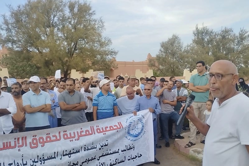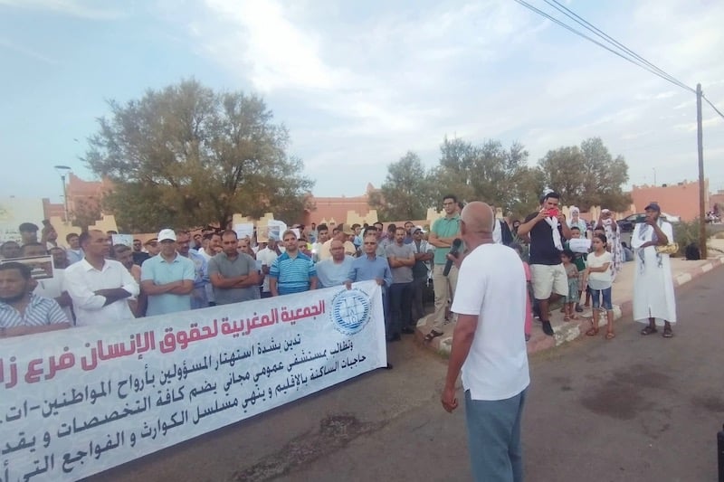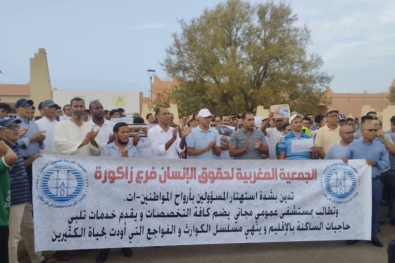 نظمت الجمعية المغربية لحقوق الإنسان فرع زاكورة، وقفة احتجاجية مساء اليوم الأحد أمام المستشفى الإقليمي بالمدينة، للتنديد بما أسمته “الظروف المأساوية التي أدت إلى وفاة سيدة تبلغ من العمر 29 سنة وجنينها، بعد معاناة استمرت ست ساعات داخل المستشفى بسبب غياب طبيبة الإنعاش وعدم توفر قسم الإنعاش”.