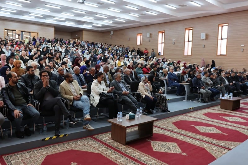 وفي ختام المحاضرة، عاد العميد عبد الجليل الكريفة لتناول الكلمة، معلنا عن المفاجأة المتمثلة في تقديم عرض مسرحي لطلبة كلية الآداب والعلوم الإنسانية، يجسّد مضامين رواية الأشعري الأخيرة “من خشب وطين”، وهو عرض من إخراج الأستاذة الجامعية المخرجة المسرحية نزهة حيگون.
