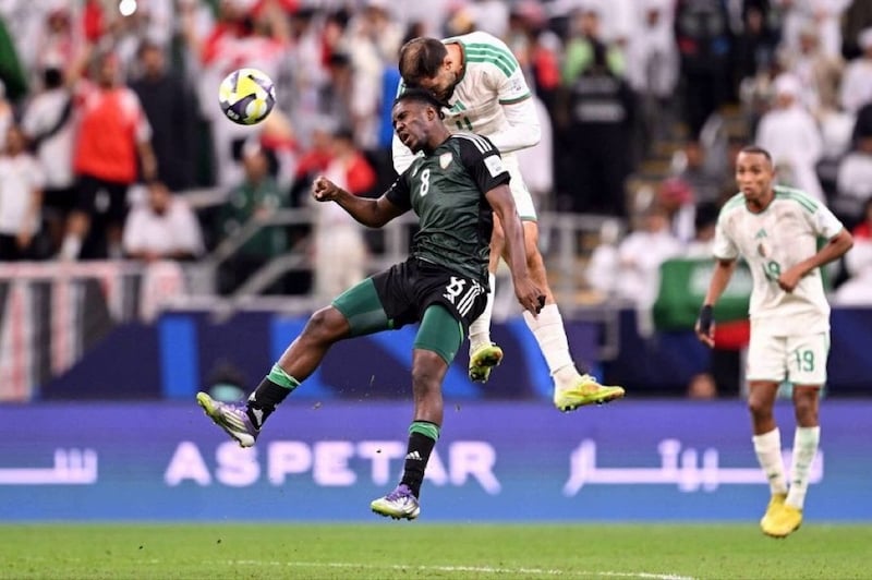 حسم المنتخب الإماراتي تأهله إلى دور نصف النهائي لمنافسات كأس العرب، بعد تجاوزه في دور الربع نظيره الجزائري بضربات الجزاء 7-6، بعد انتهاء المباراة بأشواطها الإضافية بنتيجة التعادل 1-1، التي أقيمت على أرضية “ملعب البيت” بمدينة الخور القطرية.