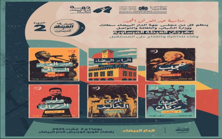 تتواصل يومي الجمعة والسبت فاتح وثاني غشت المقبل، المحطة الثالثة والأخيرة لفعاليات الدورة الثانية لمهرجان « العيطة المرساوية »، الذي تنظمه وزارة الشباب والثقافة والتواصل ومجلس جهة الدار البيضاء سطات، تزامنا مع احتفالات عيد العرش.