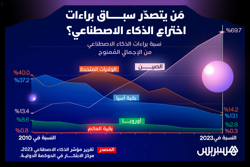 مَن يتصدّر سباق براءات اختراع الذكاء الاصطناعي.. هيمنة صينيّة بـ70% والولايات المتحدة تلاحق!