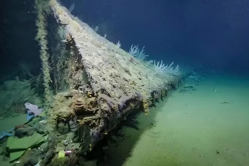 ويُظهر مقطع فيديو للحطام أجزاء من “تيروزوكي”، التي أطلق عليها الجيش الأمريكي صاروخ طربيد عام 1942، مضاءة بشكل خافت بأضواء مسيرات تحت الماء تابعة للفريق.