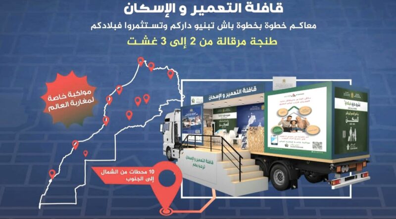 وقد تم تجهيز هذه القافلة في شكل وكالة متنقلة مجهزة بالكامل، تستقبل المواطنين وتضع رهن إشارتهم فضاء للتوجيه والاستشارة، والتواصل المباشر مع أطر المجموعة وممثلي الوزارة الوصية، كما توفر القافلة معلومات شاملة حول العروض العقارية المتوفرة، وفرص الاستثمار، وكذا البرامج العمومية ذات الصلة، وفي مقدمتها « برنامج الدعم المباشر للسكن ».