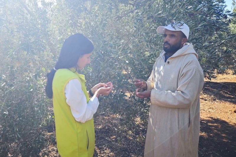 وقد واكبت هاجر خطيب، مهندسة زراعية بمبادرة المثمر في إقليم بني ملال، فلاحي المنصة التطبيقية بجماعة آيت أم البخت، طيلة مراحل إنتاج الزيتون، موسم 2024/2025.