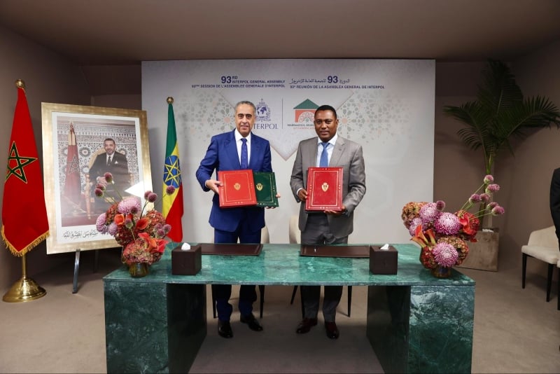 على هامش أشغال الدورة الـ93 للجمعية العامة للمنظمة الدولية للشرطة الجنائية (الإنتربول)، التي انطلقت اليوم الإثنين بمراكش، وقع عبد اللطيف حموشي، المدير العام للأمن الوطني ومراقبة التراب الوطني، والمفوض العام للشرطة الفيدرالية الإثيوبية، مذكرة اتفاق تقضي بالتعاون العملياتي والاستعلاماتي والتقني لمكافحة مختلف صور الجريمة العنيفة والإجرام المنظم الذي يحدق بأمن البلدين.