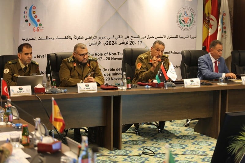 في إطار أنشطة مركز (5+5) التدريبي، المبرمجة ضمن مخطط العمل متعدد الأطراف لسنة 2024 لمبادرة (5+5) دفاع، احتضنت رئاسة الأركان العامة للجيش الليبي دورة تدريبية حول إزالة الألغام للأغراض الإنسانية، بمشاركة ممثلين عن القوات المسلحة الملكية المغربية، وجيوش كل من الجزائر وتونس وإيطاليا وإسبانيا، حسب ما أفاد به بيان لرئاسة الأركان العامة للجيش الليبي.