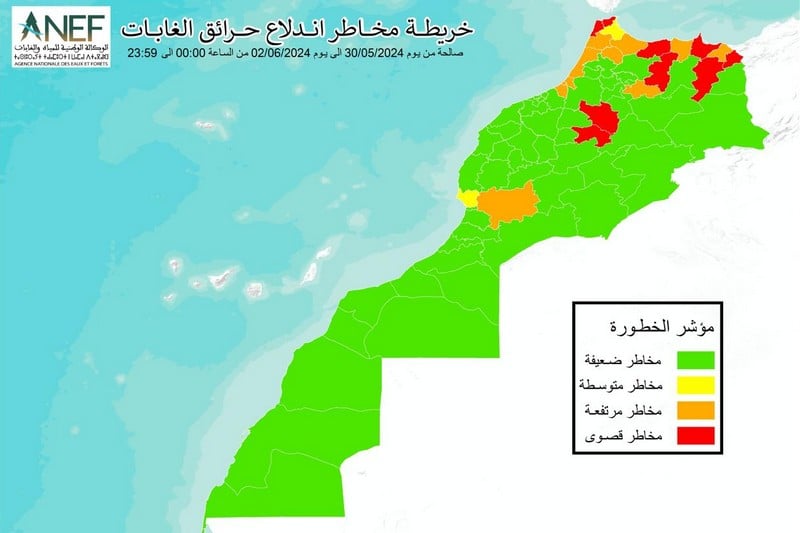وتبعا لما أوضحته الوكالة الوطنية للمياه والغابات، تم تحديد الأقاليم حسب درجة الخطورة المتوقعة بها فيما يخص اندلاع الحرائق، ما بين مناطق تعرف خطورة قصوى ومناطق ذات خطورة مرتفعة، تنضاف إليها المناطق ذات الخطورة المتوسطة.