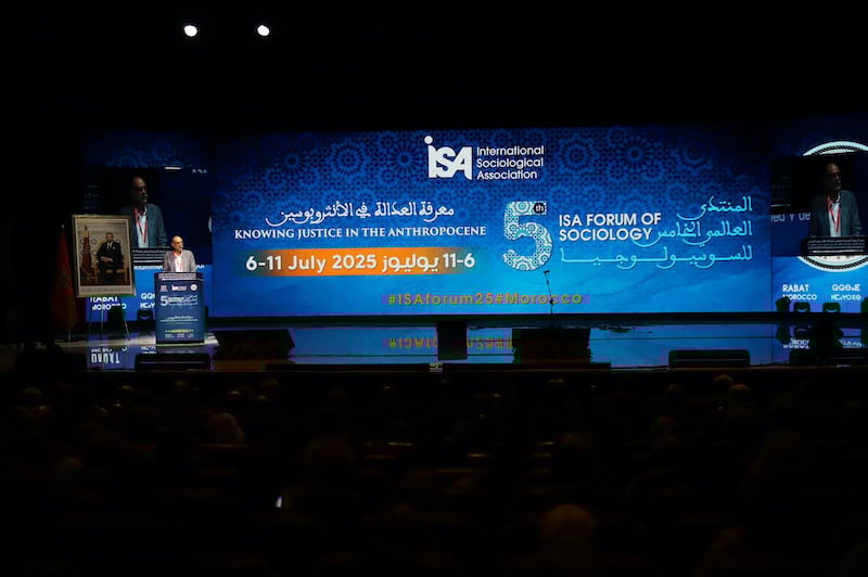 المنتدى الدولي لعلم الاجتماع، الذي نُظّمت بتزامن مع افتتاحه وقفة قرب المسرح لنشطاء مغاربة مدافعين عن حقوق الإنسان تندّد بالتطبيع الأكاديمي وتدعو إلى عدم مشاركة أكاديميين إسرائيليين مساندين لإبادة الفلسطينيين، عبّر رئيس الجمعية المنظِّمة له في افتتاحه، في ظل تصفيقات علماء اجتماع من عشرات الدول، عن تضامن الموعد العلمي “مع زملائنا في فلسطين (…) في ظل الإبادة الجماعية الجارية ضدّهم في غزة الآن، والوضع المزري أكثر فأكثر في الضفة الغربية”.