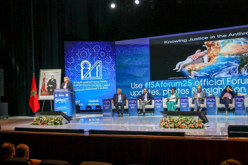 وفي سابقة؛ تنظم هذه الدورة بدولة في القارة السمراء ومنطقة “الشرق الأوسط وشمال إفريقيا”، بشراكة بين “الجمعية الدولية للسوسيولوجيا”، و”جامعة محمد الخامس بالرباط”، و”الهيئة المغربية للسوسيولوجيا”، حول موضوع: “معرفة العدالة في الأنثروبوسين” وهو مفهوم علمي جديد يتزايد النقاش حوله، يرى أن النشاط الإنساني المتسارع له أثر غير قابل للتراجع عنه في الأرض، ما أحدث عصرا جيولوجيا جديدا يسمّى: “الأنثروبوسين”.