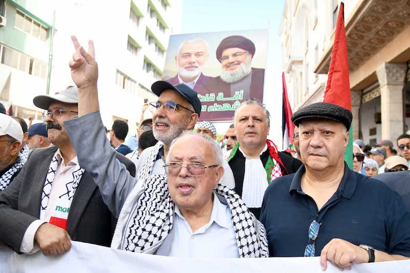 وجوه مغربية سياسية ومدنية وثقافية بارزة، لبّت موعد إحياء “الذكرى الأولى لمعركة طوفان الأقصى” المنطلقة من غزة الفلسطينية ضد المستوطنات الإسرائيلية في محيطها، وكانت في صفوف مسيرة العاصمة إلى جانب مغاربة آخرين من مختلف الانتماءات من أقصى اليمين إلى أقصى اليسار؛ فضلا عن متضامنين وحّدتهم مع آخرين الكوفية الفلسطينية والأعلام المغربية والفلسطينية واللبنانية.