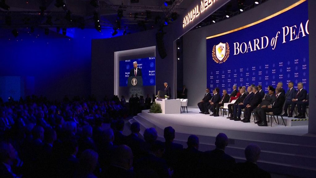 أطلق الرئيس الأمريكي دونالد ترامب رسميًا ما يسمى بـ “مجلس السلام” من منتدى دافوس الاقتصادي العالمي، بمشاركة 21 دولة من أصل 35 دولة وافقت على الانضمام، متعهداً بإعادة إعمار قطاع غزة. يهدف هذا المجلس إلى تحقيق الاستقرار في المنطقة، لكن تفاصيل آلياته وفعاليته لا تزال قيد التساؤل، خاصةً مع التحذيرات الصريحة التي وجهها ترامب لحركة حماس بشأن نزع السلاح.