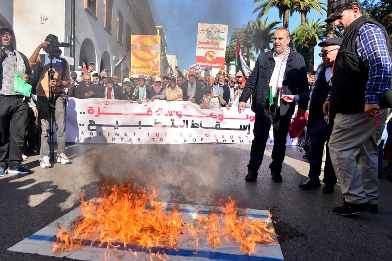 توقيعات لإسقاط التطبيع وعلم إسرائيل تحت الأقدام .. مسيرة الرباط تندد بجرائم الاحتلال