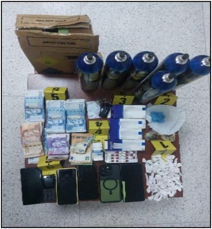 وجرى توقيف المشتبه فيهما على متن سيارة خفيفة بأحد أحياء مدينة طنجة، وذلك للاشتباه في تورطهما في حيازة كمية من المخدرات، وذلك قبل أن تسفر عملية التفتيش المنجزة في إطار هذه القضية عن حجز 12 قنينة من غاز الهيليوم المخدر، فضلا عن حجز 403 أقراص مخدرة، و79 غرام من مخدر الكوكايين و30 غرام من مخدر الشيرا، علاوة على مبلغ مالي يشتبه في كونه من عائدات هذا النشاط الإجرامي.