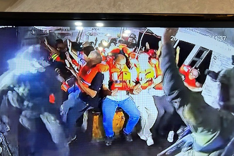 وأظهرت اللقطات المصوّرة لحظة اقتحام الجنود الإسرائيليين السفينة، حيث كان النشطاء يجلسون على سطحها، رافعين أيديهم في وضعية لا عنفية، ويرددون أغنية “بيلا تشاو” الإيطالية الشهيرة، رمز المقاومة ضد الفاشية.