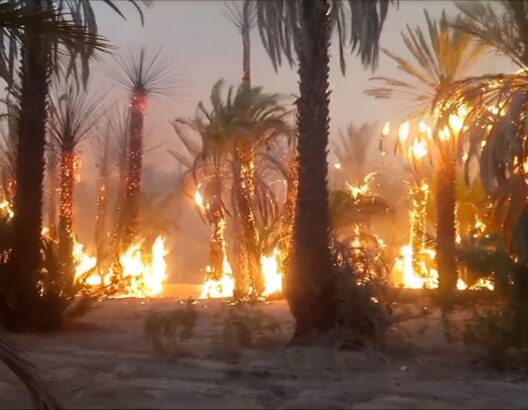 وأكدت أنه تم في هذا الإطار، تسخير عدد من الوسائل اللوجيستية من آليات صهريجية وتجهيزات للإخماد، فضلا عن إنشاء خطوط عازلة لمنع امتداد ألسنة اللهب إلى باقي أجزاء الواحة.