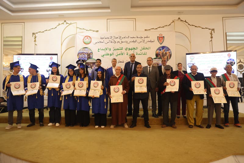 احتضنت مدينة أكادير، السبت، الحفل الجهوي للتميز المخصص لأسرة الأمن الوطني، وهو تقليد سنوي تشرف عليه مؤسسة محمد السادس للأعمال الاجتماعية لموظفي الأمن الوطني، تنزيلا لتوجيهات المدير العام للأمن الوطني ومراقبة التراب الوطني الرامية إلى تعزيز الدعم الاجتماعي وتشجيع التفوق داخل أسلاك الشرطة.