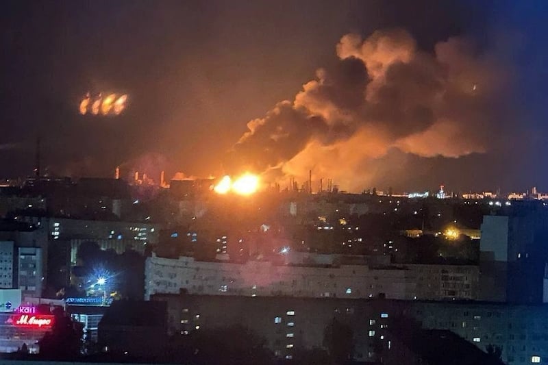 أطلقت أوكرانيا، ليل الأربعاء الخميس، عشرات “الدرونات” على روسيا؛ ما أدى إلى إصابة ثلاثة أشخاص واشتعال حرائق في منطقتين في جنوب البلاد ومصفاة نفط، حسب مسؤولين.