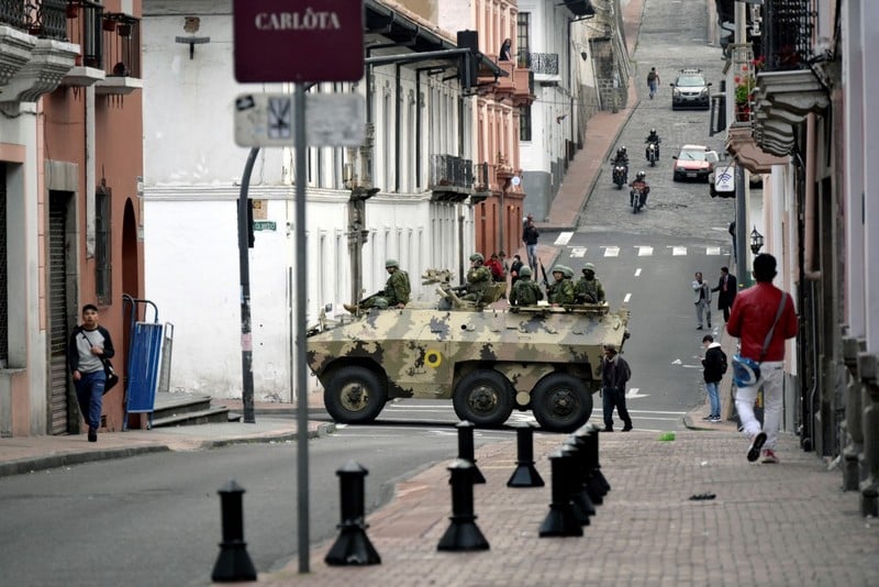وفي غواياكيل، أغلقت فنادق ومطاعم أبوابها؛ فيما تقوم مركبات عسكرية بدوريات في الشوارع.