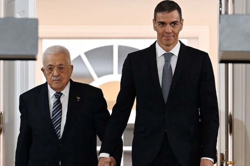 استقبل رئيس الحكومة الإسبانية، بيدرو سانشيز، الرئيس الفلسطيني محمود عباس في مدريد، تزامنا مع الاحتفاء باليوم العالمي لحقوق الإنسان، في زيارة تُعد الثانية من نوعها منذ اعتراف إسبانيا بدولة فلسطين.