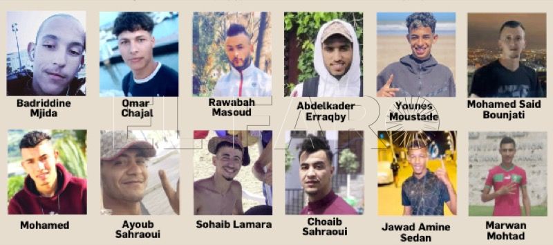 زيادة في عدد المختفين تزايد عدد المختفين والوفيات في الفترة بين نهاية أغسطس وبداية سبتمبر. من بين الحالات، أحمد بوصيف (18 عامًا، مغربي)، الذي كان يرتدي بذلة غوص قصيرة عندما ألقى بنفسه في الماء. حميد أجليان (17 عامًا) من مرتيل، وائل (16 عامًا، مغربي)، أسامة أخرجيف (22 عامًا)، ومحمد بوهجيل (29 عامًا)، فاجري ورضا سماك (18 عامًا، من الجديدة)… أسماء تنضم إلى هذه السلسلة من القصص المحطمة.