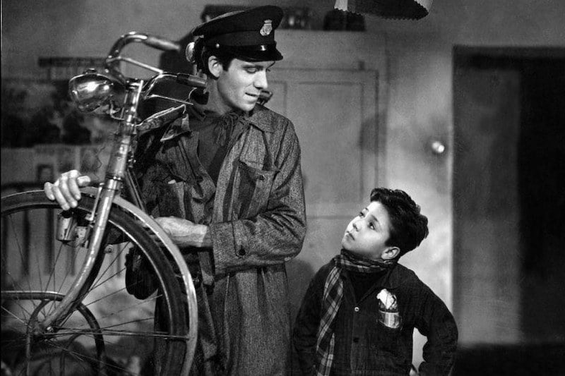 فقد ظهر أنطونيو في الفيلم الإيطالي الشهير “سارقو الدراجات” للمخرج فيتوريو دي سيكا، لا يتحدث إلا بوجهه، بارتباكه، بحركته المنكسرة، بعينَيه التائهتين وسط شوارع روما. ويعمل كمُلصِق إعلانات، وظيفة متواضعة ولكنها شريفة، مشروطة بوجود دراجته. ويخبرنا الفيلم أن الفقر لا يُنتج بطلاً خارقًا، وإنما إنسانًا هشًا يحتاج دراجة هوائية ليعيش. وفي اللحظة التي تُسرق فيها، يفقد أنطونيو ما هو أعمق من وسيلة نقل: يفقد احترامه لنفسه. وتتحول رحلته في البحث عنها إلى مرآة للأزمة الاقتصادية التي عانت منها إيطاليا ما بعد الحرب العالمية الثانية. وحين يسأل طفله الصغير “ماذا سنفعل إن لم نجدها؟”، لا يكون السؤال عن الدراجة فحسب، بل عن معنى الحياة في ظل فقدان أبسط أدوات البقاء وسط الخراب والفقر والبطالة.