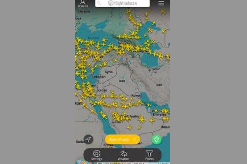 وأظهر الموقع الإلكتروني تجنب شركات الطيران التحليق في المجال الجوي لكل من إيران والعراق وسوريا وإسرائيل. واختارت مسارات أخرى مثل الشمال عبر بحر قزوين أو الجنوب عبر مصر والسعودية، حتى لو أدى ذلك إلى ارتفاع تكاليف الوقود والأطقم والطيران لوقت أطول.