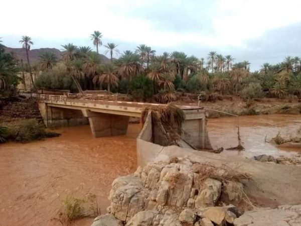 – انهيار كلي أو جزئي لأربع منشآت فنية متوسطة.
