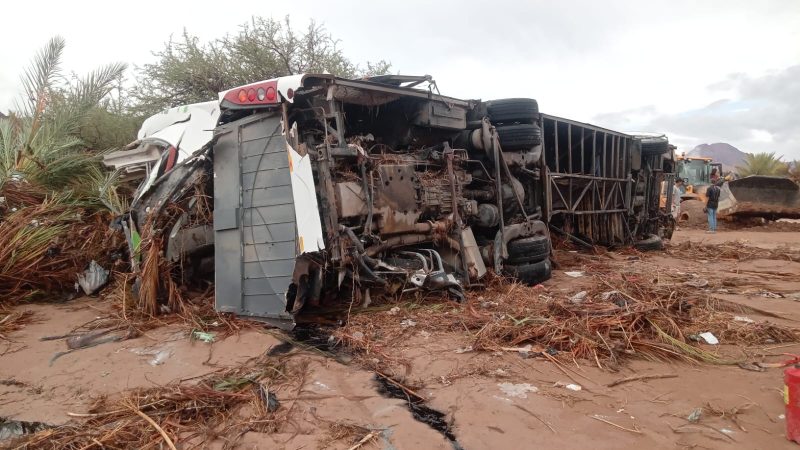 كشف مصدر رسمي لـ »اليوم 24″، 11 مواطنا مازالوا في عداد المفقودين، في حادث انجراف حافلة للركاب بفعل السيول على مستوى واد طاطا.