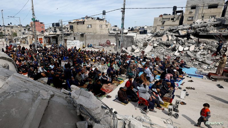 أقام مئات آلاف الفلسطينيين في محافظات غزة، الأربعاء، صلاة عيد الفطر المبارك فوق أنقاض مساجد دمرتها إسرائيل ضمن حرب متواصلة على القطاع منذ 6 أشهر.