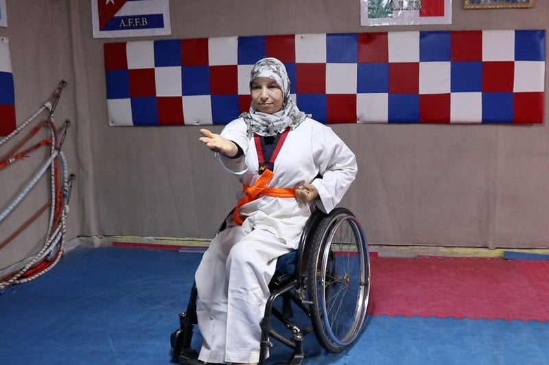 لم تخضع فتيحة الحكيم لإعاقتها الحركية، التي ألزمتها الجلوس على مقعد متحرك إثر إصابتها في طفولتها بمرض مجهول، بل ثابرت على ممارسة أصناف رياضية عديدة، منها رياضة “البارا تايكواندو”، حيث توجت مسيرتها بالحصول، وهي في سن الـ47 سنة، على ذهبية بطولة الشرطة العربية الأولى للعبة “البارا تايكواندو بومسي”، التي نظمها، مؤخرا، عن بعد مجلس الرياضيين في القيادة العامة لشرطة دبي بالتعاون مع الاتحاد العربي لتايكواندو الشرطة واتحاد الإمارات للتايكواندو.